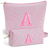 Fohufo Travel Makeup Bag for Girls - Personalized Initial Pink Makeup Bag, Teen Girl Gifts Trendy Stuff, 6 7 8 9 10 11 12 Year Girl Birthday Gift, Christmas Gift for Girls Travel Essentials, Letter A