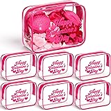 Rtteri 6 Pcs Galentine's Day Gift Bags Hot Pink Clear Makeup Bag with Frame Happy Galentine's Day Makeup Cosmetic Bag Toiletry Storage Purse Bulk for Friends Valentine Party Favors